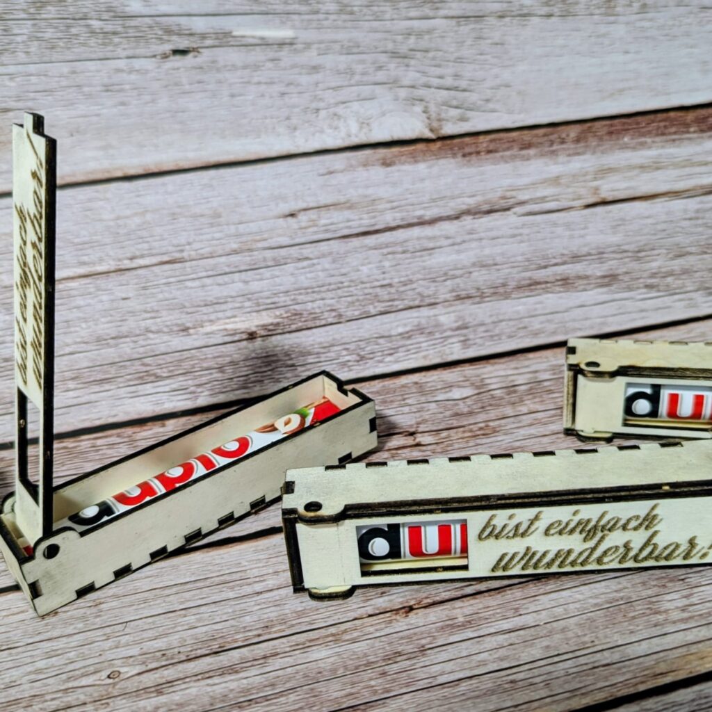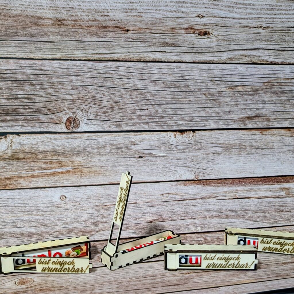 Manchmal sind es die kleinsten Dinge, die einem den Tag versüßen, oder? Ich hatte letztens Lust, mal wieder was Schnelles am Laser zu machen, das nicht nur im Regal einstaubt, sondern direkt Freude bereitet. Die Idee: Eine passgenaue Holzbox für einen Duplo-Riegel, kombiniert mit einer lieben Botschaft.